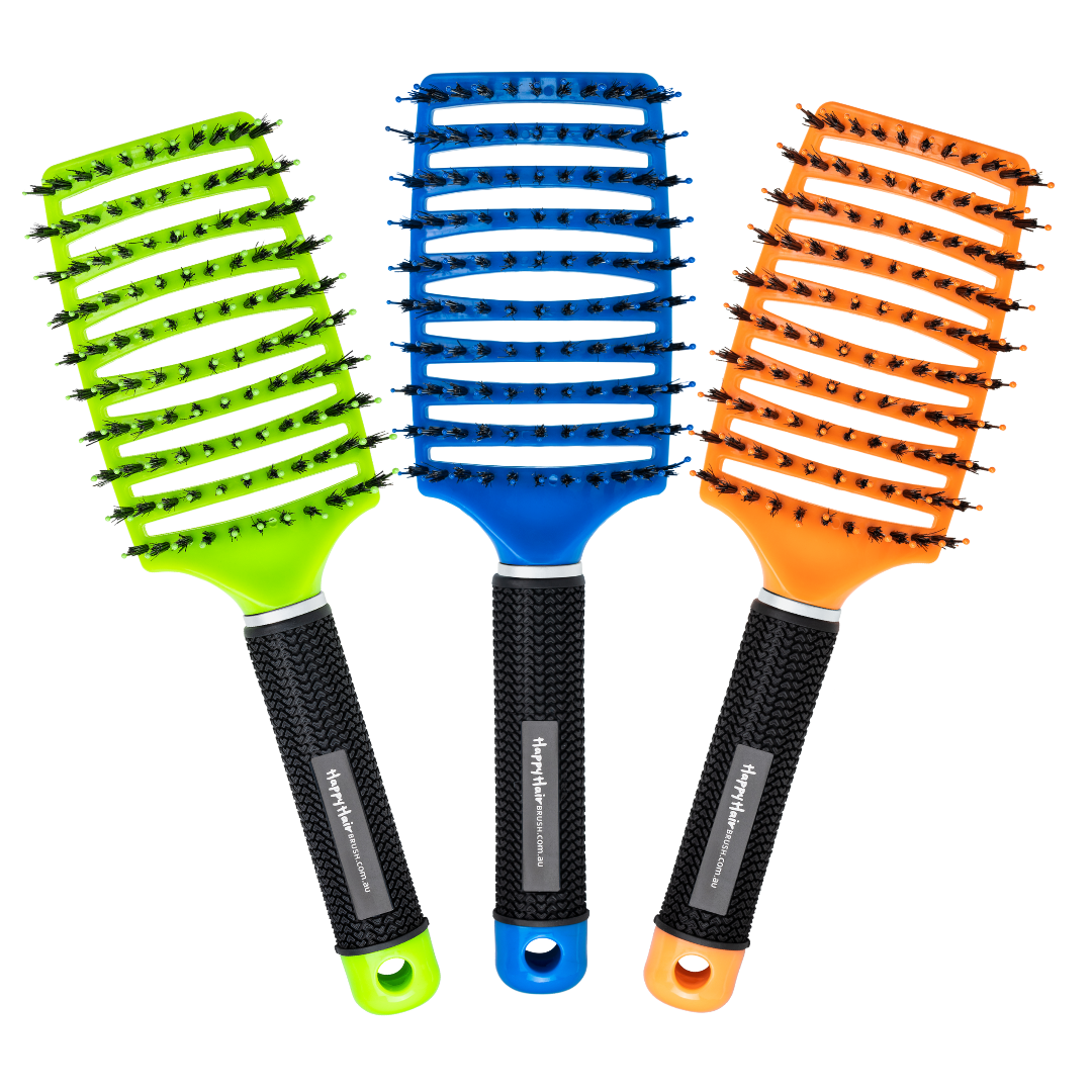 The Original Happy Hair Brush™ incorporates a mix of 5 different hairbrushes and combs styles into one. It has a curved, solid (non-flexible) head so that it can deal with the toughest of hair while protecting the most sensitive of heads.